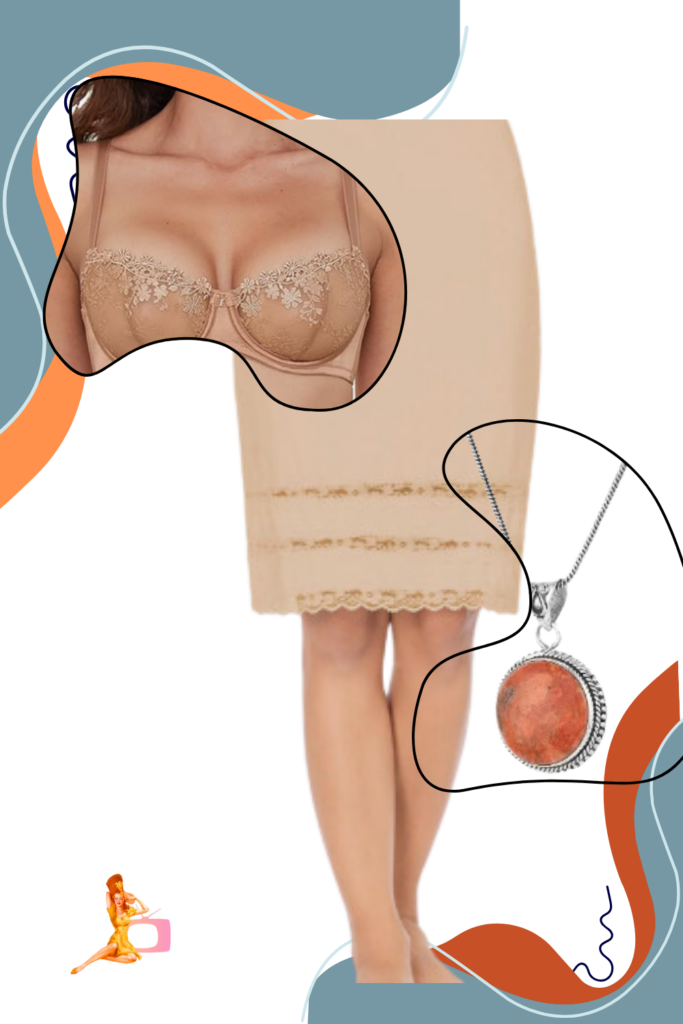 This exquisite vintage 1950s inspired lingerie features a beautifully designed woman’s slip paired with a matching bra, perfect for those who appreciate classic elegance and timeless charm. The slip boasts a flattering silhouette that gently flares out, accentuating the waist and creating a feminine hourglass shape. Crafted from soft, luxurious fabric, it drapes gracefully, ensuring comfort while exuding sophistication. The bra complements the skirt perfectly, showcasing delicate lace details and vintage-inspired patterns that evoke a sense of nostalgia. Ideal for  feeling fabulous every day, this lingerie set is a delightful addition to any wardrobe, allowing you to embrace your inner vintage goddess with confidence and style.